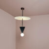 La suspension Ange crée le lien entre un disque en albâtre, un cône et un globe en verre opalin. La lumière joue avec ces matières nobles et leurs effets de transparence, la suspension devenant ainsi à la fois diffuseurs et réflecteurs.